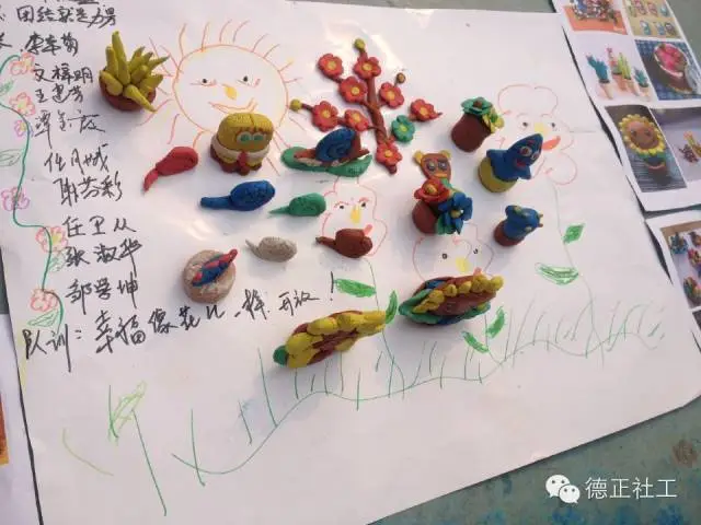 捏软陶环节,居民中不乏有能人巧匠,能力超强,按照图纸,将花、卡通人物等活灵活现的展现在人们面前。还有擅长解说的居民,用软陶作品将小组主题阐述的淋漓尽致。